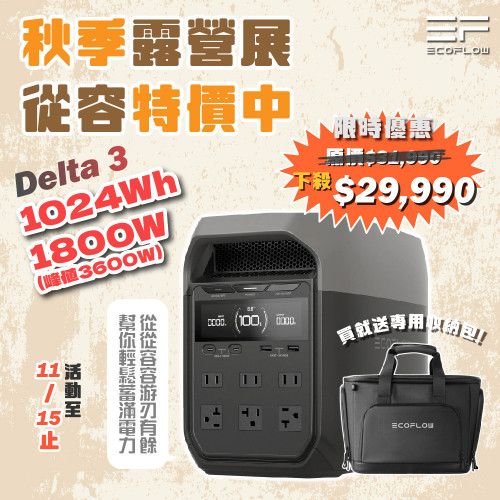 【贈專用收納包】丹大戶外【EcoFlow】Delta 3 戶外儲能電源│電池│5年保固│行動電源│固士特科技