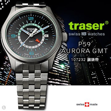 丹大戶外用品【Traser】Traser P59 Aurora 極光GMT 碳灰錶款(鋼錶帶) #107232