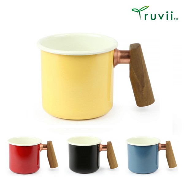 丹大戶外【Truvii】400ml 雙色木柄琺瑯杯 五色│杯子│杯具│茶杯│咖啡杯│馬克杯