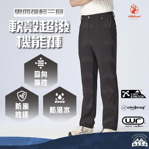 丹大戶外【Wildland】荒野 男四彈輕三層軟殼超潑機能褲 0B32312|長褲|保暖|防風|機能褲|防潑水|四面彈性