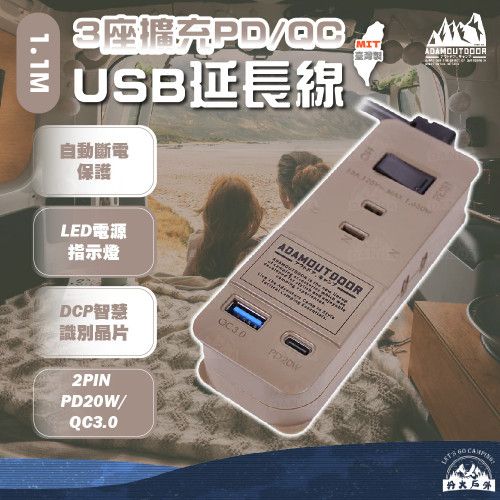 丹大戶外【ADAM】1.1M3座擴充PD/QC USB延長線│電線│插座│USB│延長線│PD/QC│ USB延長線