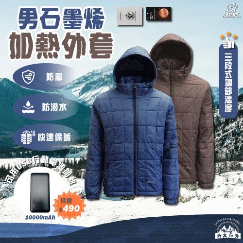 丹大戶外【Ratops】瑞多仕 觭龍 男石墨烯加熱外套|外套|防風|保暖|石墨烯|防潑水|保暖外套