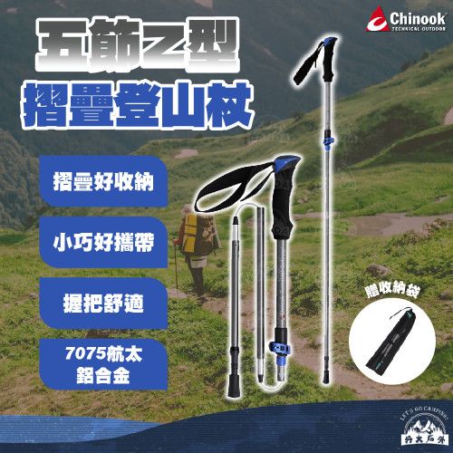 丹大戶外【Chinook】奇努克 五節Z型摺疊登山杖 單支|登山|爬山|健行|鋁合金|登山杖|摺疊登山杖|快扣登山杖