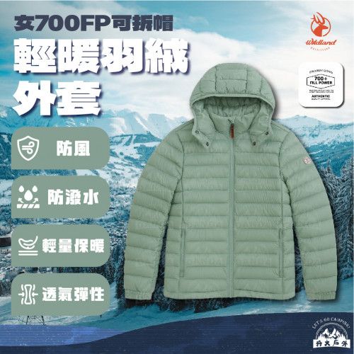 丹大戶外【Wildland】荒野 女700FP可拆帽輕暖羽絨外套 0B32101|羽絨|外套|保暖|輕量|防風|透氣彈性