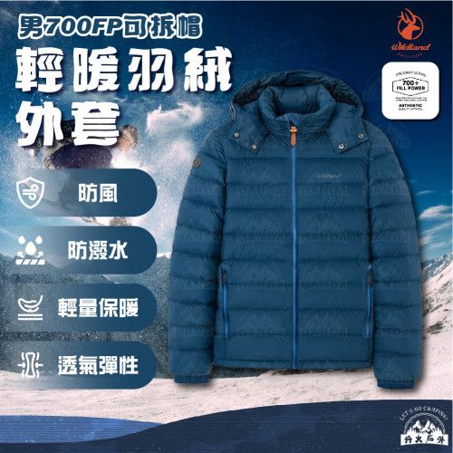 丹大戶外【Wildland】荒野 男700FP可拆帽輕暖羽絨外套 0B32102|羽絨|外套|保暖|輕量|防風|透氣彈性