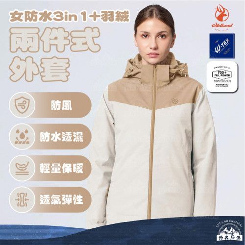 丹大戶外【Wildland】荒野 女防水3in1+羽絨兩件式外套 0B32917|羽絨|外套|保暖|輕量|防風|透氣彈性