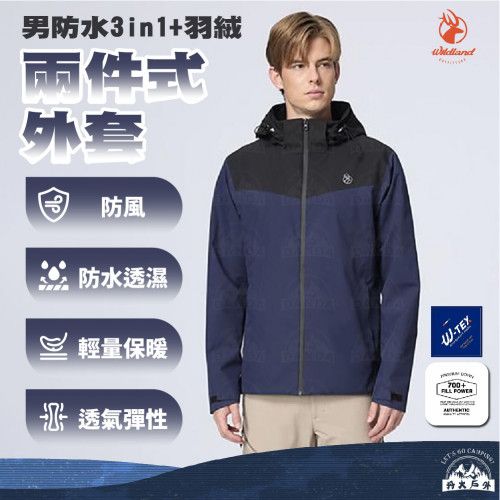 丹大戶外【Wildland】荒野 男防水3in1+羽絨兩件式外套 0B32918|羽絨|外套|保暖|輕量|防風|透氣彈性