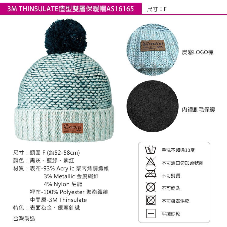 丹大戶外【ADISI】3M THINSULATE 造型雙層保暖帽 AS16165 黑灰│毛帽│保暖帽