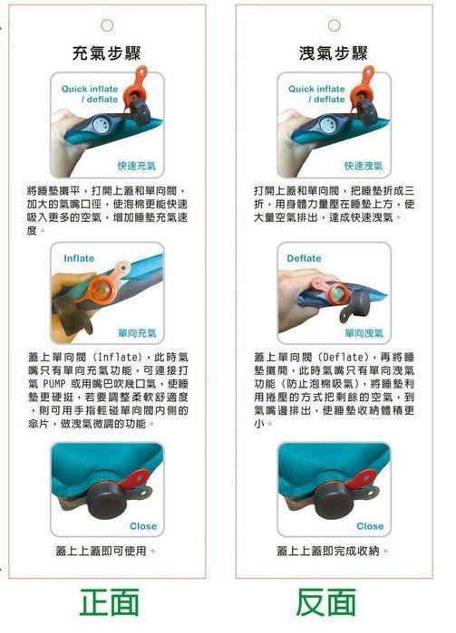 | 雙吹嘴設計,達到快速充氣和消氣收納功能. |