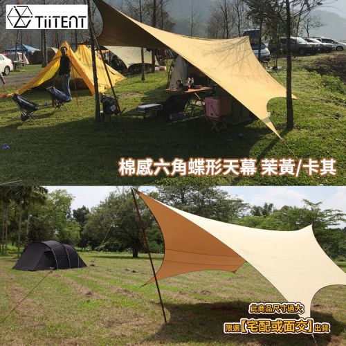 丹大戶外【TiiTENT】HEXA 棉感六角蝶形天幕 茉黃THXY-670、卡其THXKH-670 帳篷│客廳帳│家庭帳