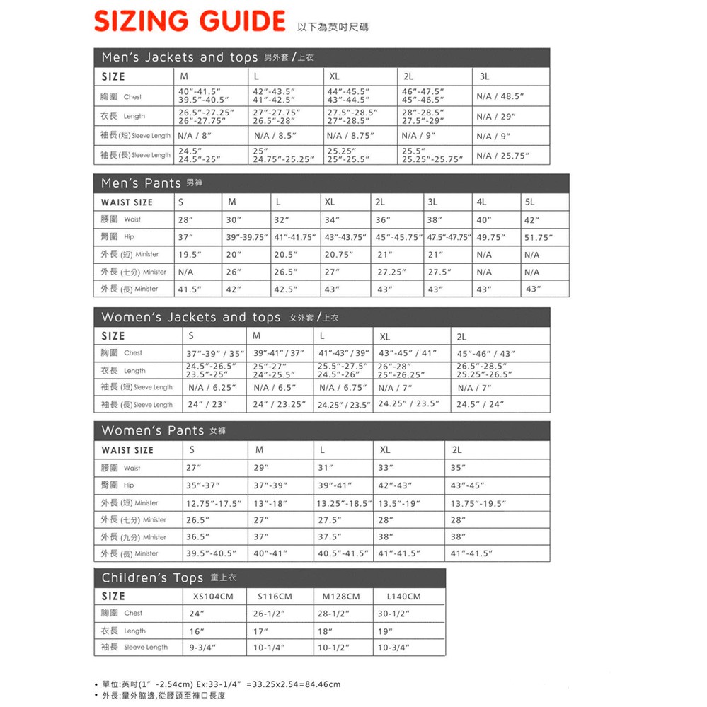 以上尺寸為合身尺寸建議之丈量,亦為您一般在市面上買的正常尺寸唷!