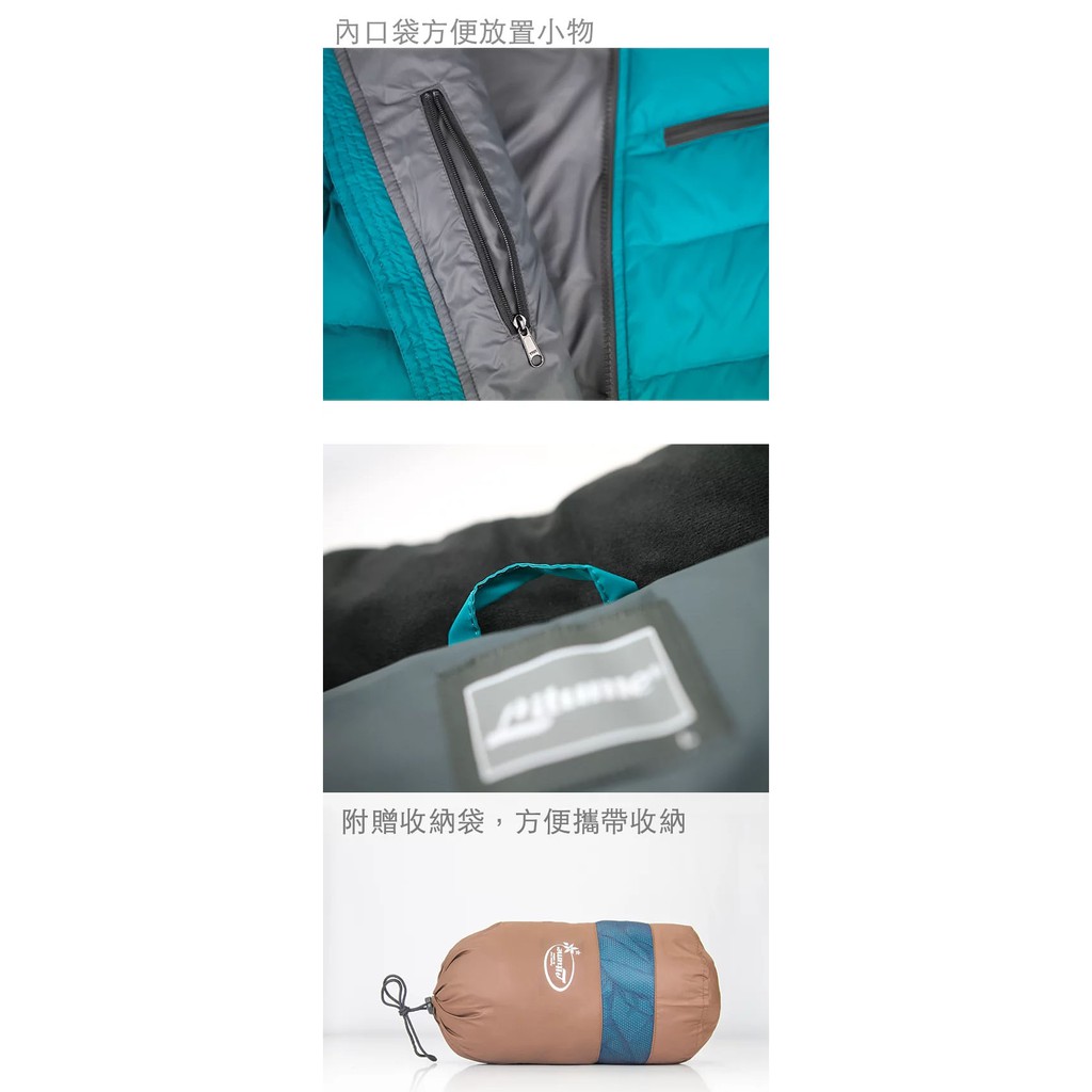 【輕巧便利】透氣超輕材料,高度可壓縮,採用羽絨,保暖性與輕量同時兼顧;可輕便的收納在附帶的小袋中便於攜帶