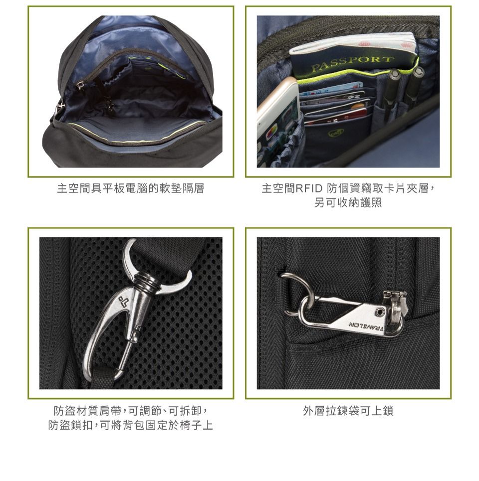 丹大戶外【TRAVELON】URBAN 防盜城市斜背包 TL-43499/黑 後背包|包包|側背包|旅遊肩背包|單肩包