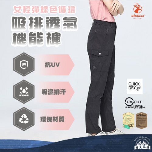 丹大戶外【Wildland】荒野 女輕彈綠色循環吸排透氣機能褲 0B51303|舒適|環保材質|吸濕排汗|抗UV30