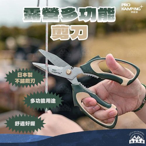 丹大戶外【ProCamping】領航家 露營多功能剪刀-綠/灰 PK-HSM01|露營|剪刀|工具剪|開瓶器|食物剪刀