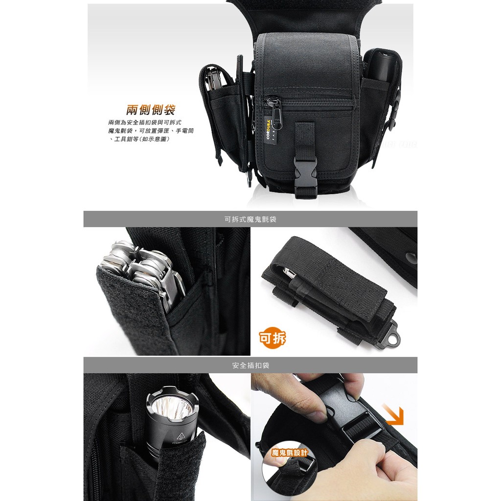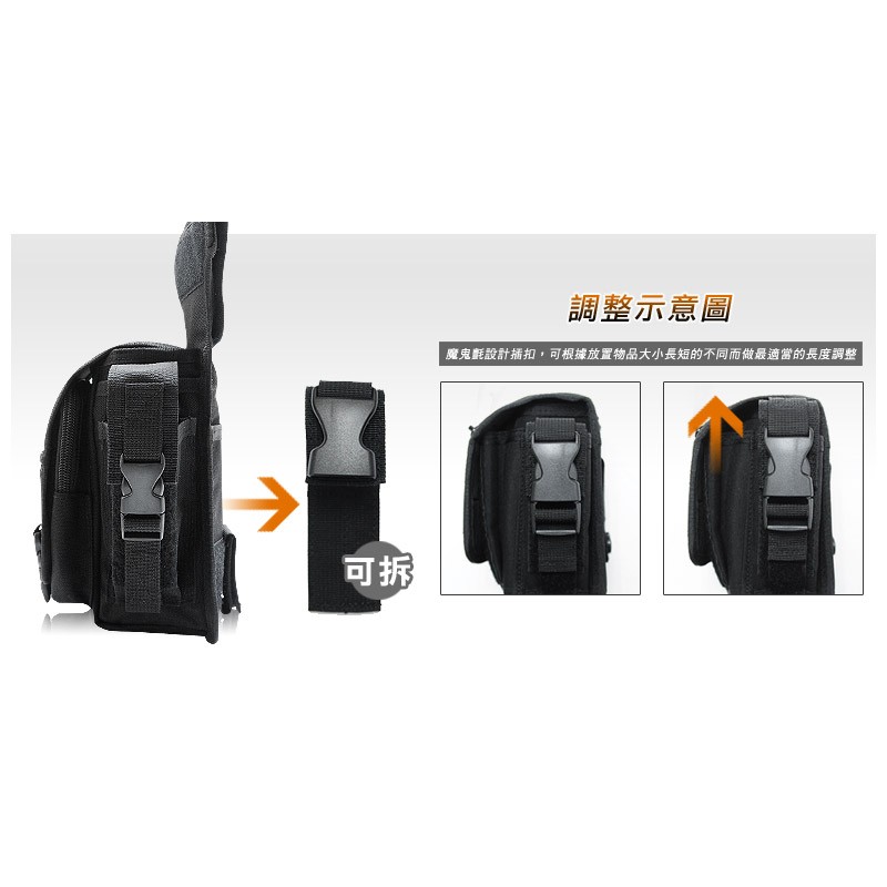 可依個人喜好隨意變化肩側揹、腰掛、腿掛組合。