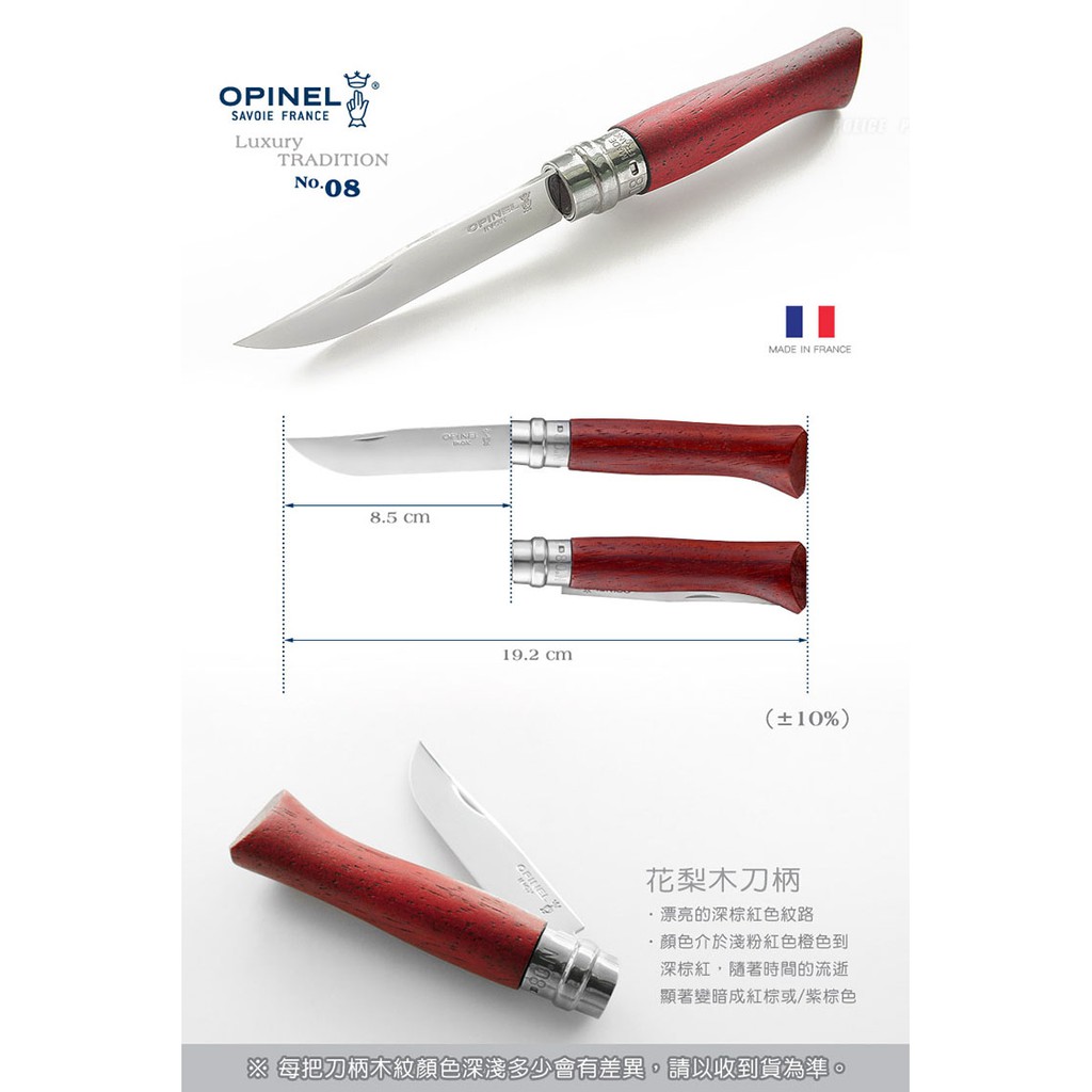 品名:OPINEL No.08拋光不鏽鋼折刀/花梨木刀柄