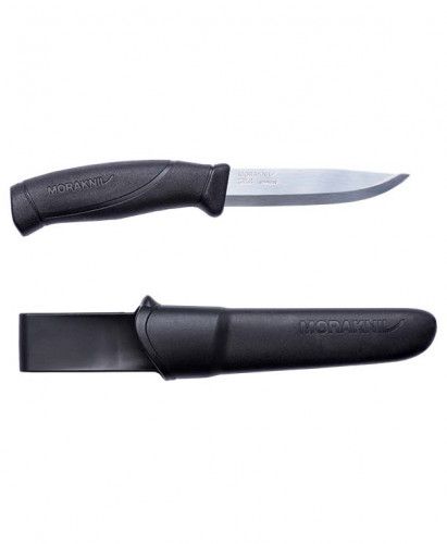 Mora 的不鏽鋼是由山特維克公司(Sandvik)12C27 和14C28N(硬度為HRC56-58)所製成,具有極高的強度,壽命長以及具有高抗鏽能力的不鏽鋼。再加上獨家的熱處理過程,提供刀刃最佳的銳利度、最高的強度。不鏽鋼的刀片銳利度能夠維持得比碳鋼更持久。