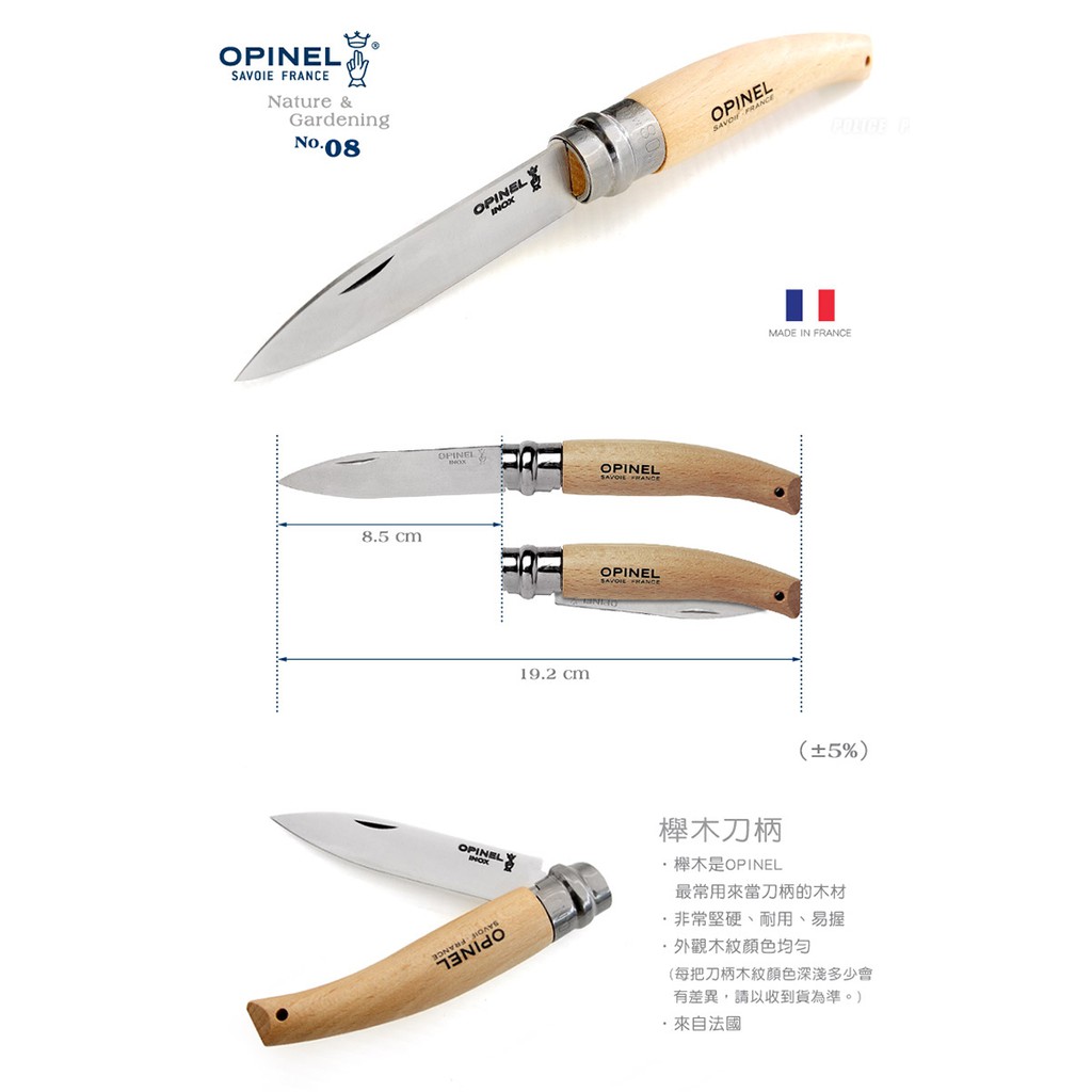 ˙櫸木是OPINEL最常用來當刀柄的木材