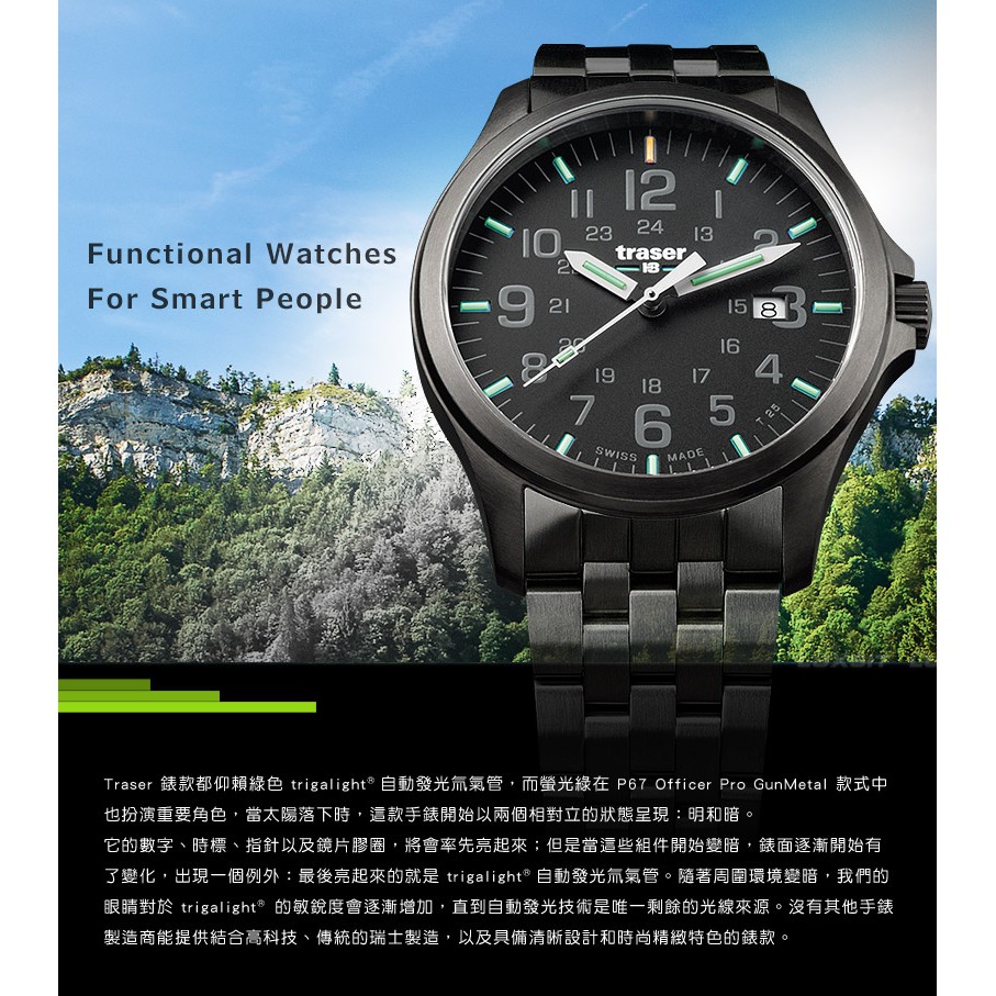 | 本商品標準配備 + 贈品 其他贈品: ■【贈品】GUN #G-198 特警多功能皮夾 本商品規格 ※本產品說明,僅供參考,請勿作為正式採購招標規格,如有需要,請來電我司洽詢相關業務人員。 ※以下原廠提供參考數據。 品名:Traser Officer Pro GunMetal (#107868鋼錶帶) 型號:#107868 鋼錶帶-80 機芯:瑞士石英機芯 錶殼:不鏽鋼,表面經槍鐵灰色處理 轉盤:無 鏡片:防刮耐磨藍寶石 防水性:10 ATM / 10 bar 尺寸(±10%):直徑:42 mm 重量(±10%):165g (含標準款錶帶) 黑色錶盤:灰色數字 發光位置:trigalight®氚管自動發光照明技術和Super-LumiNova 夜光材料 瑞士製造 標準錶帶: 型號:#107814 鋼錶帶-80 製圖日期:2018.02.23 請消費者注意,因電腦色差問題,如實際收到物品顏色與圖片不符,請以實際物品為主! 本店商品均與實體商店同步販售,為了避免讓消費者因缺貨與調貨等待太久, 請下單前請先詢問是否有現貨~丹大戶外感謝您。 |