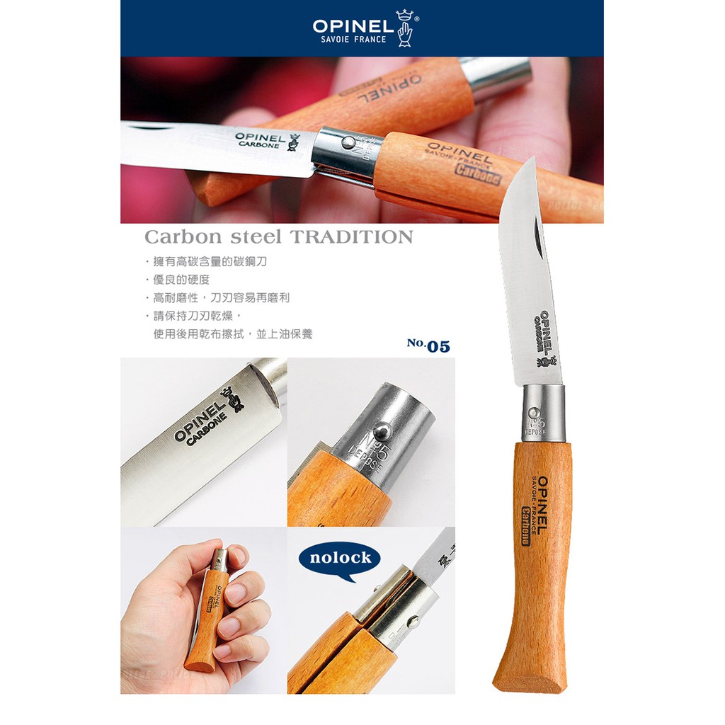 | ※以下原廠提供參考數據 品名:OPINEL Carbon steel TRADITION 法國刀碳鋼系列(No.5 #OPI_111050) 型號:#OPI_111050 尺寸( ±5﹪): 刀刃長6 cm、全長14 cm 重量( ±5﹪): 14 g 》碳鋼刀刃系列 ˙擁有高碳含量的碳鋼刀 ˙優良的硬度 ˙高耐磨性 ˙容易再磨 ˙別讓刀片碰到水 ˙使用後用乾布擦拭,並上油保養 》櫸木刀柄 ˙櫸木是OPINEL最常用來當刀柄的木材 ˙來自法國 ˙非常堅硬、耐用,便於工作 ˙有者均勻的外觀 ˙特色是有許多小且暗的短線在上面 ※未滿18歲 兒童及少年,請勿購買刀械。 |