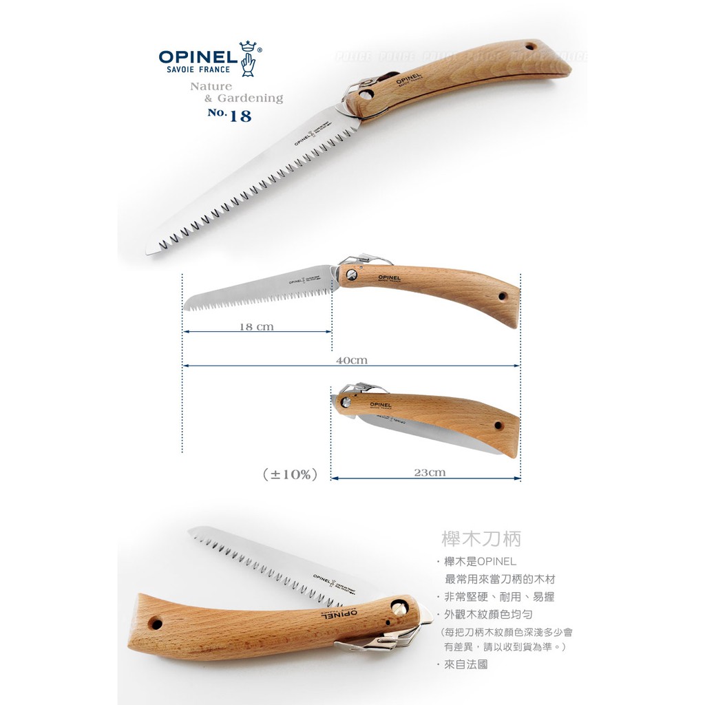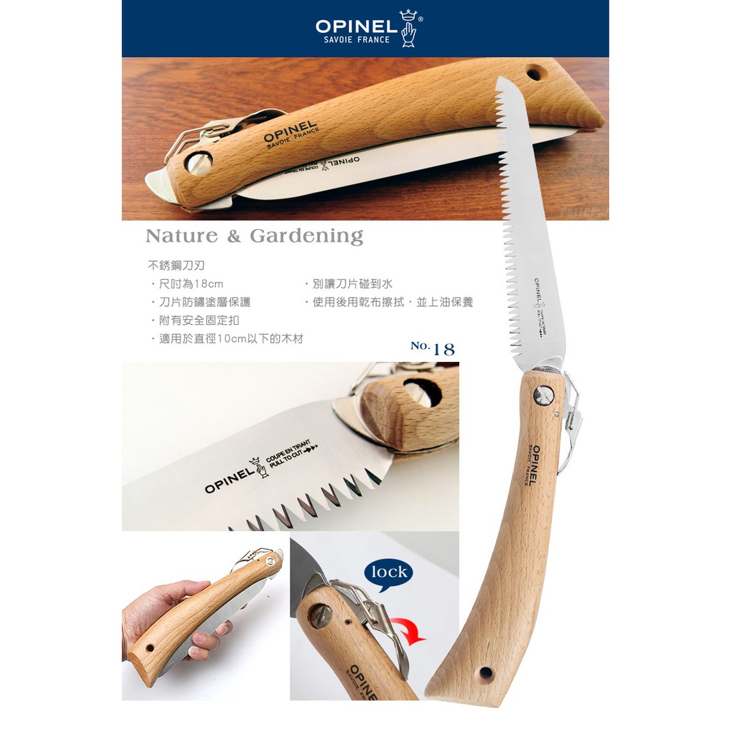 品名:OPINEL Nature & Gardening 法國刀園藝系列No.18 碳鋼鋸/櫸木刀柄