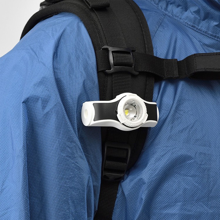 MH3 頭燈與固定座可快速拆卸分離的功能,方便您手持照明,筆夾設計還可固定在衣領、腰帶或背包上,
