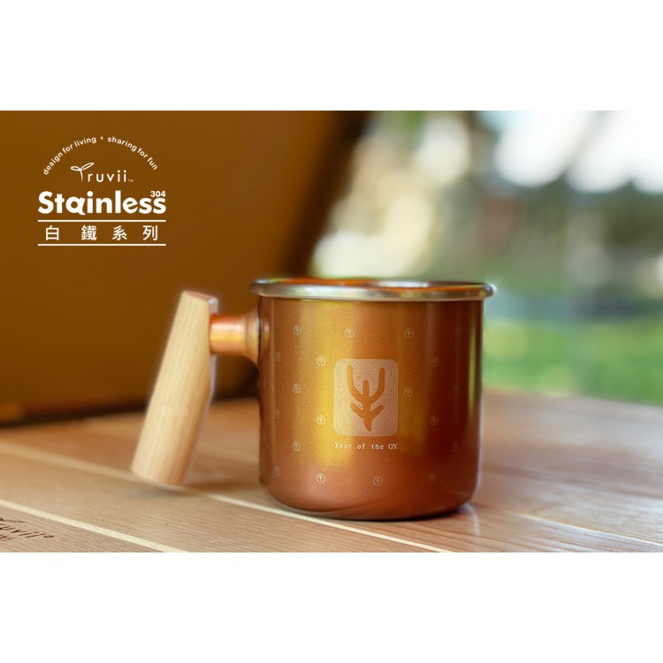 丹大戶外【Truvii】辛丑金牛– 400ml 木柄白鐵杯 杯子│茶杯│水杯│馬克杯│咖啡杯