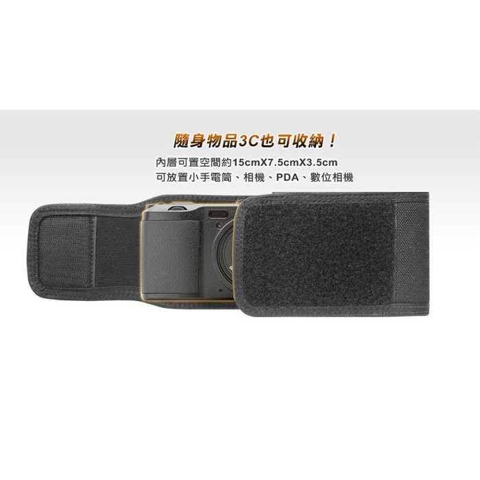材質:使用 1000 丹 CORDURA 尼龍布材質,耐抗磨、不易撕裂、不易褪色,再經過 DuPont Teflon 抗潑水處理,夾縫 4 m m 厚的 EVA 材質內板 , 使外型更挺立、不易變型。並加覆黑色天鵝絨於外蓋內層表面,觸感良好。外蓋加車縫的軟性仿皮革,即使多次掀蓋也不易變形,以魔鬼粘作為開閤,可依放置的物品高度任意調整外蓋的長短,取物時方便又迅速! 外層:側邊再加縫一層的伸縮帶可放置筆類等 ..