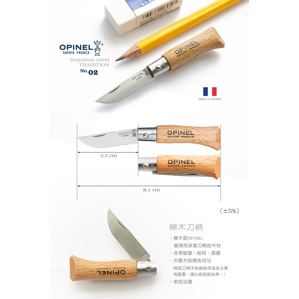 丹大戶外【OPINEL】不鏽鋼折刀/櫸木刀柄 No.02 OPI_001070│小刀│刀子│刀具│鋼刀│折疊刀│迷你刀