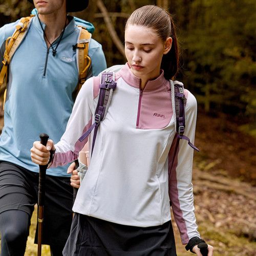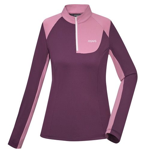 丹大戶外【ATUNAS】女款保暖拉鍊衫/刷毛保暖衫 A1PS2220W白/深紫 透氣排汗|上衣|長袖