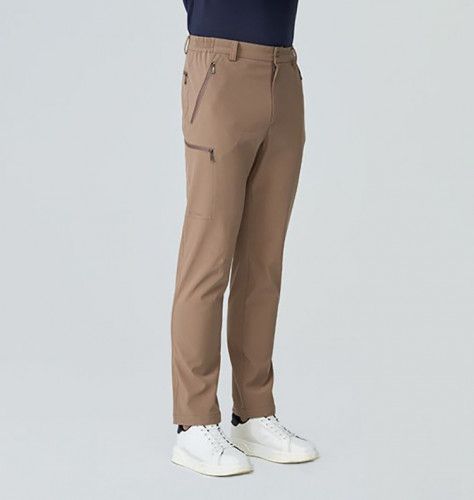產品特性  前方兩側拉鍊口袋、右前口袋內側織帶吊耳(可掛鑰匙)、右側拉鍊開袋設計+LOGO繡花、後上兩個拉鍊開袋、膝圍處車摺及褲底三角岔布增加活動量
