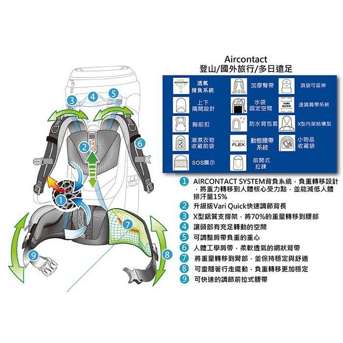 革命Aircontact 背負系統,能夠快速提昇並保持背部乾爽舒適,減少能量的耗損