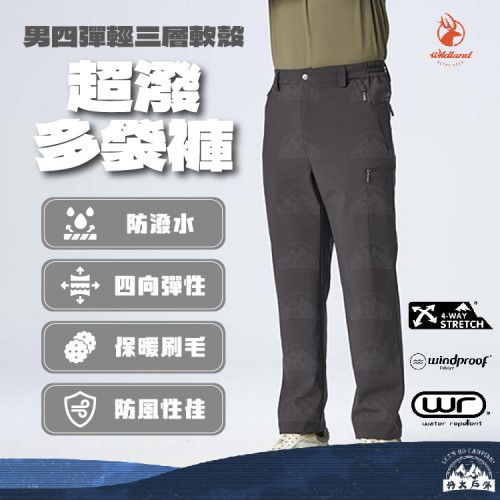 丹大戶外【Wildland】荒野 男四彈輕三層軟殼超潑多袋褲 0B32320|保暖|輕量|防風|機能褲|防潑水|四面彈性
