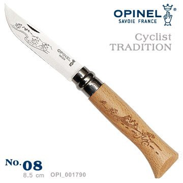 丹大戶外【OPINEL】法國 不鏽鋼櫸木柄折刀-自行車圖騰 No.8 OPI_001790 折疊刀│刀子│小刀│切刀