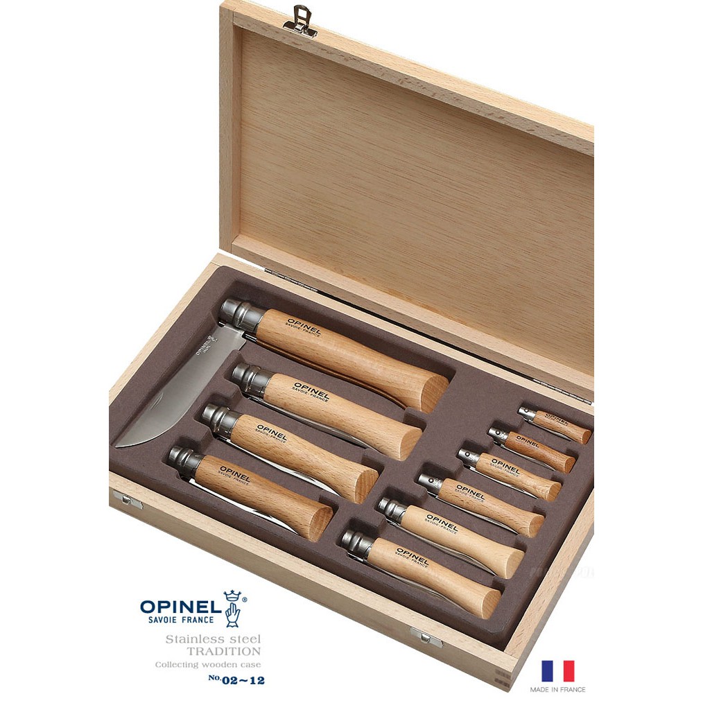 丹大戶外【OPINEL】法國 001311 全系列十把不鏽鋼刀收藏組/櫸木刀柄/折疊刀/瑞士刀/複合刀具