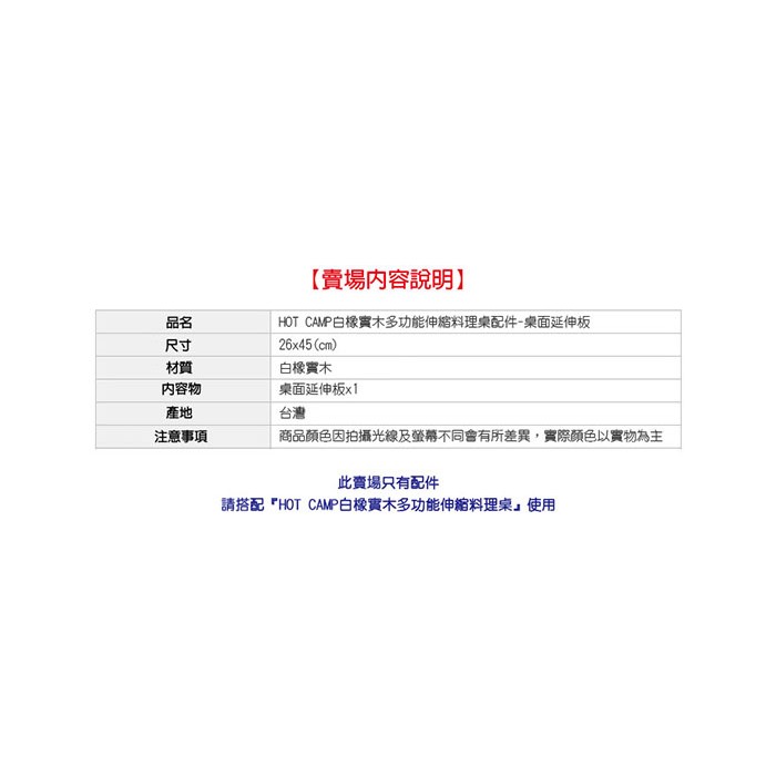 丹大戶外【HOT CAMP】白橡實木多功能伸縮料理桌配件-桌面延伸板 HC814 桌子│延伸桌│折疊桌