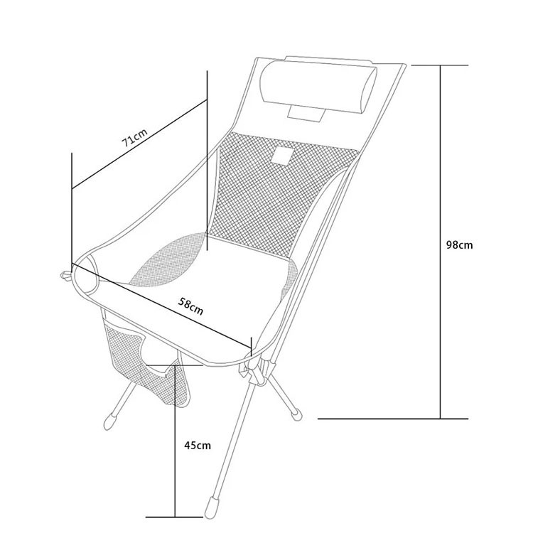 高背椅:採用500D尼龍布,PU抗撕裂和潑水處理,布面紮實久坐不變型,椅面加寬設計,雙腳更加舒適,7075加厚航空鋁合金管材支架,ABS耐磨防滑腳墊,腰包收納袋採用500D尼龍布,實用又美觀,專利設計下方拉環和手機收納袋方便使用。