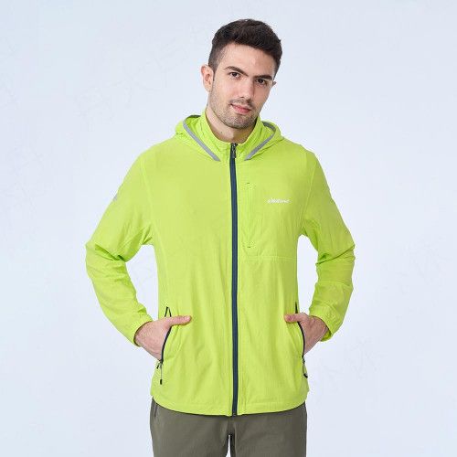 產品特性 : 帽可收納於領內依需求收放使用、左側胸袋設計、前中拉鍊配色、前中拉鍊上方擋風拌帶設計在拉鍊打開通風時可簡易固定、左胸/右袖/背部反光LOGO設計、左側口袋可收納整件外套、袖口鬆緊帶