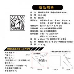 品   名 : CAMPING ACE 野樂黑森戰術-黑盾充氣車尾帳650